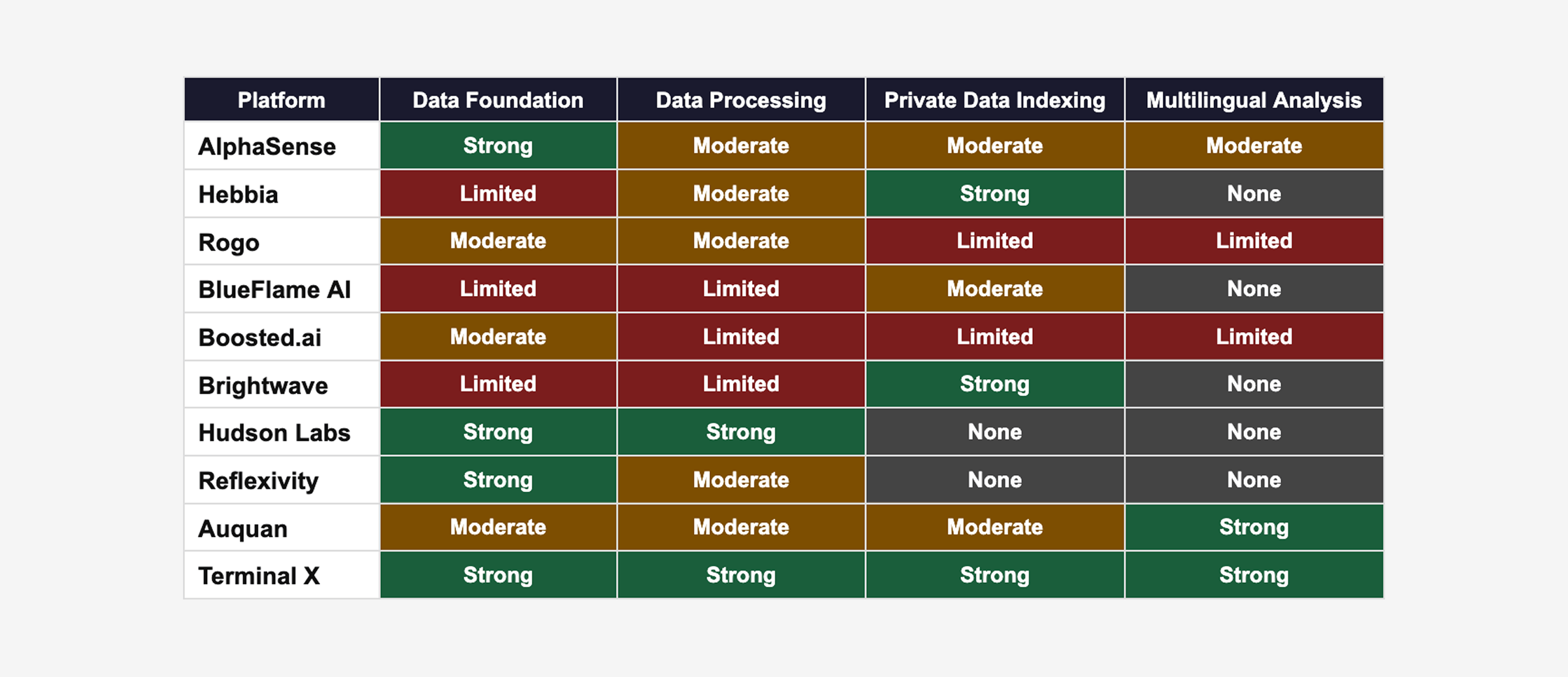 This post compares ten vertical AI platforms built specifically for institutional finance — excluding general-purpose LLMs and pure data providers — across four criteria that reflect how investment teams actually evaluate these tools.