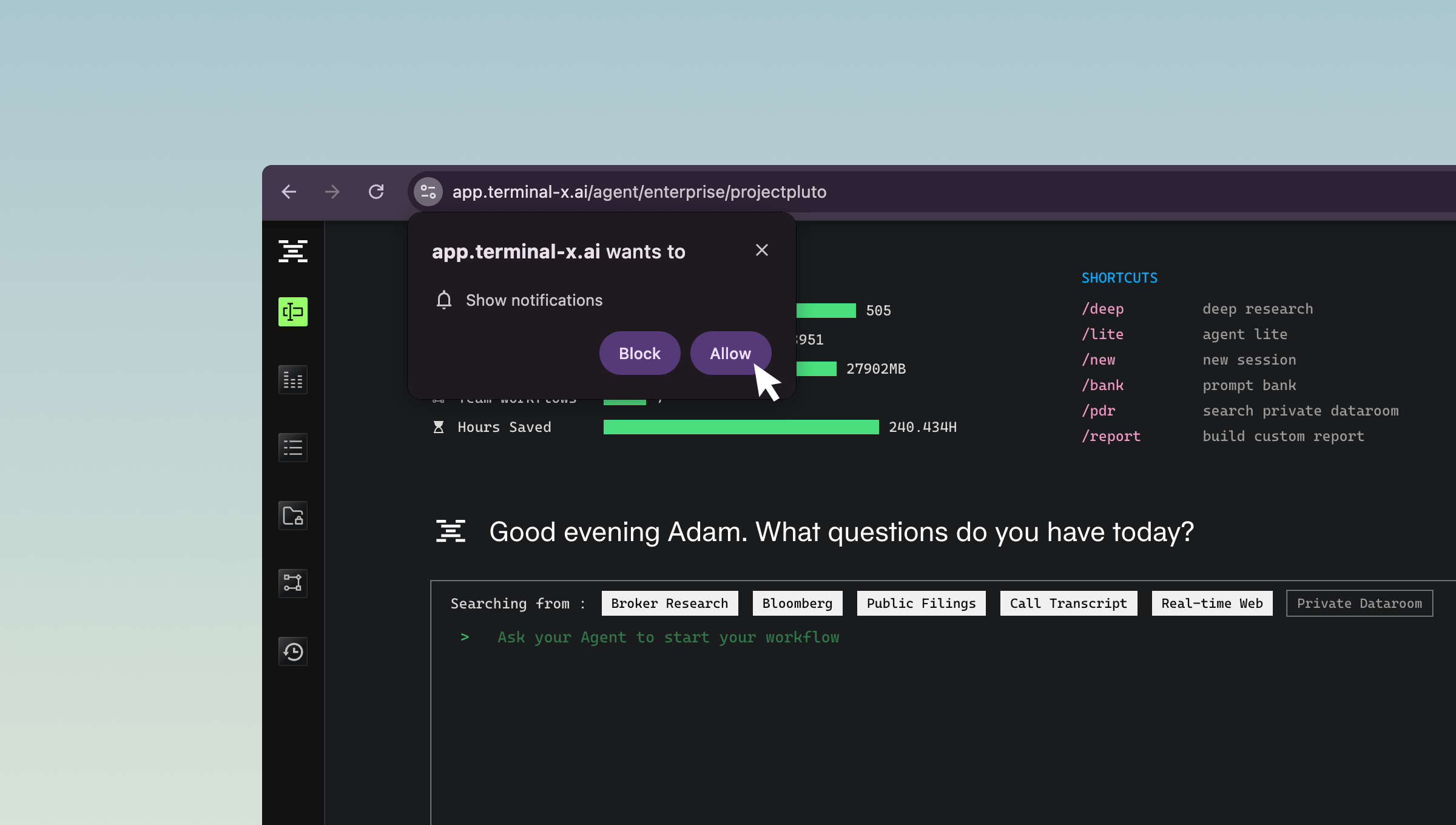 When prompted, click "Allow" to enable desktop notifications. This ensures alerts appear even when Terminal X is running in the background.