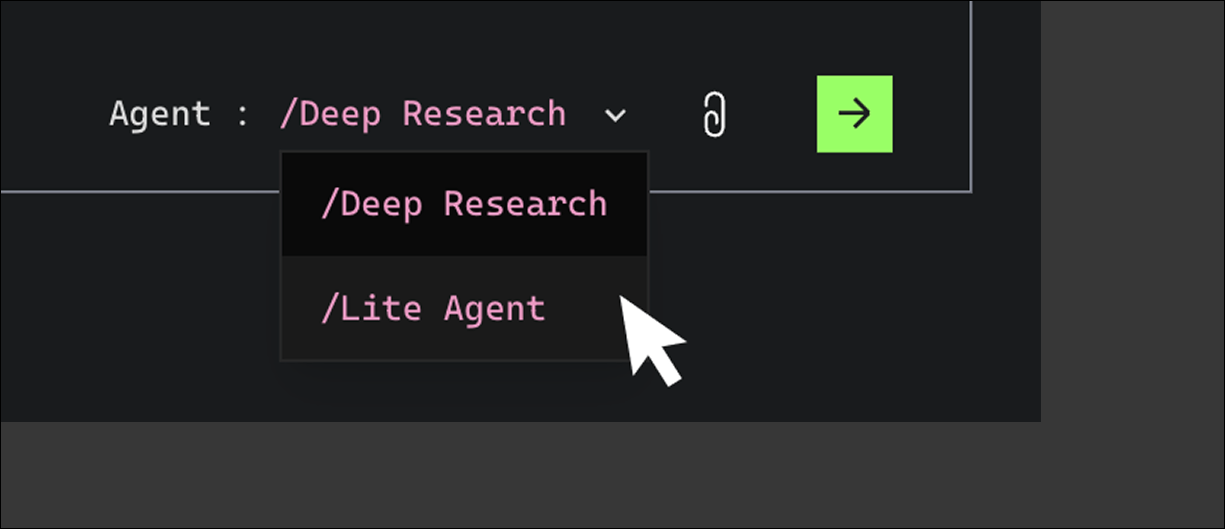 If you prefer faster responses from the Agent, you can enter the shortcut command /lite in the search bar to switch to Lite Agent mode.